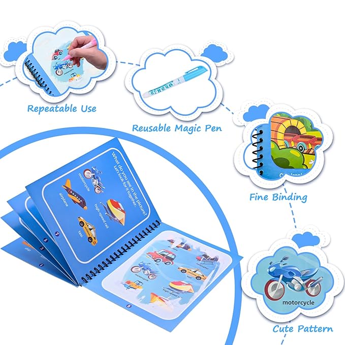 Let your child paint, learn, and play — all without the mess! This Reusable Magic Water Painting Book keeps kids engaged with fun illustrations that magically appear with water and fade away after drying.
